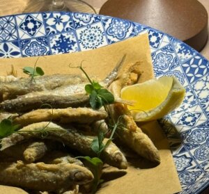 Fritto misto all’italiana con contorno di patate e verdure fritte.